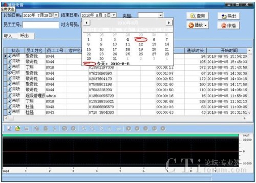 通過電話錄音監(jiān)聽系統(tǒng),對(duì)所有來話進(jìn)行全程錄音,從而達(dá)到質(zhì)量監(jiān)督和防范糾紛的功能,并可以通過錄音系統(tǒng)讓優(yōu)秀服務(wù)代表的錄音實(shí)例成為案例學(xué)習(xí)的典范,同時(shí),通過錄音系統(tǒng),還可實(shí)時(shí)監(jiān)聽服務(wù)代表的通話。