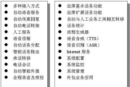 交互式語音應(yīng)答及傳真系統(tǒng)(IVR/IFR) IVR(Interactive Voice Response,交互式語音應(yīng)答)以及IFR(Interactive Fax Response,交互式傳真應(yīng)答)應(yīng)用軟件主要完成系統(tǒng)語音引導(dǎo)、語音交互式語音應(yīng)答、收發(fā)傳真等功能。IVR的使用節(jié)省了人工接續(xù)時(shí)間,使呼叫中心效率大幅度提高,大大降低了運(yùn)營成本。在IVR/IFR這方面的產(chǎn)品,HOLLYCRM有HollyIVR。HollyIVR是成熟的電信級IVR/IFR應(yīng)用軟件產(chǎn)品,可以實(shí)現(xiàn)自動語音引導(dǎo)、語音交互式語音應(yīng)答、收發(fā)傳真、圖形化流程開發(fā)、系統(tǒng)監(jiān)控管理、自動外撥、TTS/ASR等功能,在電信級和企業(yè)級等數(shù)幾十個(gè)不同規(guī)模的呼叫中心系統(tǒng)中被廣泛使用 。