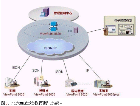 北京大學是我國首批被確定開展現(xiàn)代遠程教育試點的院校之一,自1999年起至今,北京大學現(xiàn)代遠程教育已經(jīng)遍布全國18個省市,2002年北大MBA作為國內(nèi)先進的遠程教育項目作為一項重要的國際間的教育交流項目,欲通過建設(shè)視訊系統(tǒng)和美國互通,進行國際間的MBA遠程教學,同時可以進行幾個分點之間的交互式視頻會議,提高學習效率。