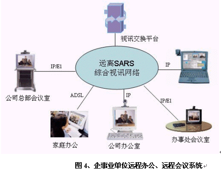 非典型肺炎不但對國家的經(jīng)濟造成了重大的損失,而且使得全社會對"非典"噤若寒蟬,大家對出差甚至外出都異常緊張。華為公司提供為個人家庭辦公、探親訪友的遠程多媒體通信解決方案,大家在家里即可通過網(wǎng)絡(luò)和親朋好友"面對面"交流、在家中辦公。減少外出、遠離人員眾多地區(qū),有效預防非典。對于有條件的用戶群可以推薦在現(xiàn)有寬帶線路或新增寬帶線路上購買軟件,即可實現(xiàn)親朋好友間的個人視頻通信;對于暫不具備寬帶條件的群體,如學生等,可以考慮在重點營業(yè)廳設(shè)立專門會議室或者視訊公話亭等,提供預約視頻服務(wù),滿足其溝通的需求。