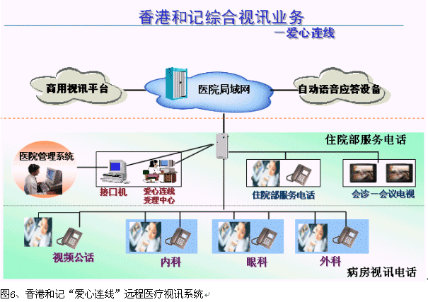 目前,香港和記電信已經(jīng)在香港的"瑪麗醫(yī)院"大廳、非典病房、以及其他安全場所安裝了個人視頻系統(tǒng),通過該系統(tǒng),病人和家屬就可以進行"面對面"的交流,無論對于非典病人的康復,還是保護病人家屬,防止非典傳染都有及其重要的作用。
