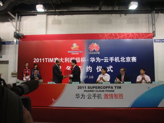 7月6日下午消息,今天,華為云手機在北京宣布將獨家冠名贊助2011年意大利足球超級杯北京賽,這是華為終端首次在全球贊助國際頂級賽事。