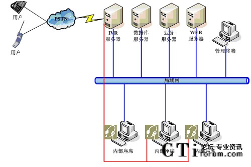 以數(shù)字中繼語音板卡為語音交換核心,建設呼叫中心系統(tǒng);適合中小型企業(yè),座席數(shù)量較少的客戶采用;