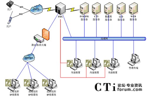 以IP為主要通信手段,利用Internet的開放性,建設IP分布式呼叫中心系統(tǒng);適合在全國有各種分布機構的企業(yè)采用;