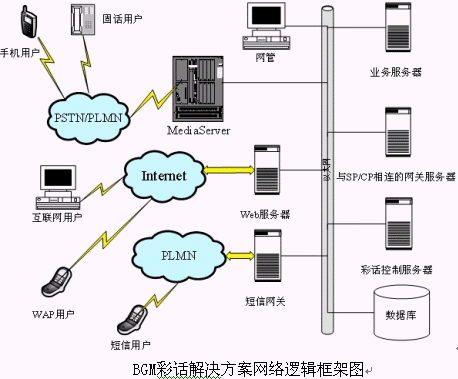 針對市場對彩話的需求,林克海德公司推出了林克海德彩話解決方案(BGM, Background Music Service)。BGM彩話解決方案是在獲得市場成功的LMS業(yè)務支撐平臺(Linkhead Media Server)的基礎上面向彩話具體應用進一步深入研發(fā)而完成的。林克海德公司自主開發(fā)的LMS業(yè)務支撐平臺是一個很有前瞻性的和先進性的平臺,是一個跨網絡平臺的業(yè)務系統(tǒng),同時支持傳統(tǒng)的TDM網絡、過渡網、下一帶網絡(NGN)、3G網絡,可以為廣大增值業(yè)務運營商構造同時支持TDM網絡和IP電信網的業(yè)務系統(tǒng),這點可以從兩個方面來體現(xiàn),一方面LMS業(yè)務平臺能夠充分利用運營商已有的網絡和用戶資源開展電信增值業(yè)務,以最小的投資為用戶展現(xiàn)更加豐富和個性化的NGN和3G的業(yè)務;另一方面LMS業(yè)務系統(tǒng)為下一代網絡和3G探索成功的業(yè)務和贏利模式,實現(xiàn)業(yè)務的平滑過渡。