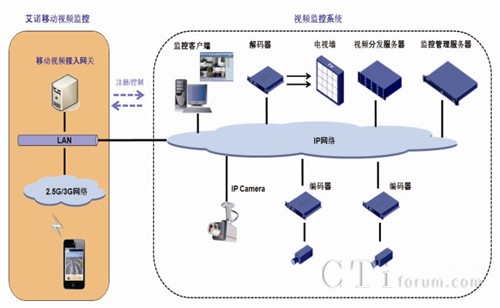 艾諾通信憑借多年的移動視頻開發(fā)和項目經(jīng)驗,推出了移動視頻監(jiān)控解決方案。該方案采用移動視頻接入服務(wù)器與原有監(jiān)控系統(tǒng)互通,將監(jiān)控圖像通過智能轉(zhuǎn)碼技術(shù)處理,轉(zhuǎn)換成可以在移動網(wǎng)絡(luò)上流暢傳送的視頻碼流,最終將圖像呈現(xiàn)在手機、平板電腦等安裝了視頻監(jiān)控客戶端的移動終端上。同時,監(jiān)控中心也可以通過手機逆向監(jiān)控。