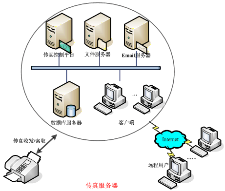 | 文件服務(wù)器 | 實(shí)現(xiàn)傳真文件管理、制作和轉(zhuǎn)換。 |
