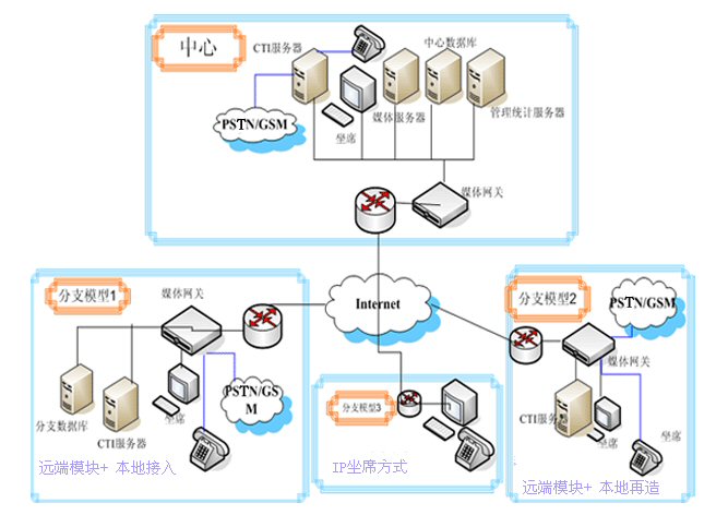 - 多種分布式、遠(yuǎn)端坐席實現(xiàn)模式,滿足用戶不同分支機構(gòu)的業(yè)務(wù)和規(guī)模需要。