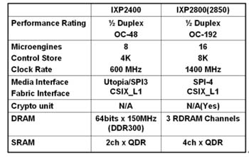 Intel XP-2XXX系列網(wǎng)絡處理器大致包含:IXP-2400、IXP-2800及IXP-2850,請參考表一的性能差異。除此之外,Intel還考慮比照了IXP-42X系列的做法,高度整合MACs等功能模塊,建造優(yōu)異的性價比產(chǎn)品,使這一系列處理器的應用更普及化。