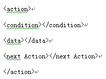 該節(jié)點的約束條件配置到節(jié)點中,當前的數(shù)據和業(yè)務邏輯配置到[data]節(jié)點中,邏輯的跳轉[next Acton]定義著。這樣業(yè)務,數(shù)據,業(yè)務關系就通過這種方式串接起來。客戶端處理程序按照[condition]定義好的條件處理當前[data]節(jié)點中的數(shù)據后得到一些新數(shù)據。