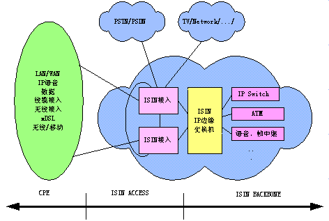 BACKBONE(骨干網(wǎng))、ISIN ACCESS(接入網(wǎng))和ISIN CPE(用戶端系統(tǒng)設(shè)備),可以構(gòu)成向用戶提供語音、數(shù)據(jù)、圖像等綜合業(yè)務(wù)的統(tǒng)一的ISIN網(wǎng)絡(luò)體系。