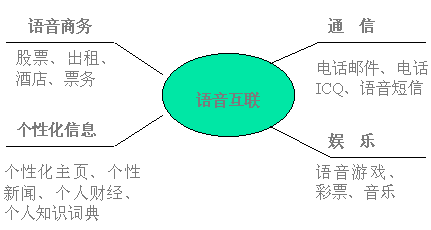在中國,電話有著最廣泛的用戶群;追求方便時(shí)尚,希望使用互聯(lián)網(wǎng)信息、郵件而不懂或不熟悉鍵盤操作的用戶占4/5;語音互聯(lián)網(wǎng)是電話網(wǎng)與互聯(lián)網(wǎng)的完美結(jié)合,通過語音互聯(lián),普通電話用戶用自然語言對話的方式即可獲取互聯(lián)網(wǎng)的主要服務(wù),滿足用戶任何時(shí)間、任何地點(diǎn)、任何設(shè)備獲取信息的需求。在美國、日本,語音互聯(lián)已成為簡易終端接入互聯(lián)網(wǎng)的主要方式之一。
