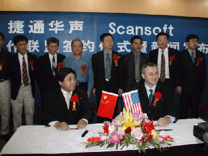 2004年5月20日,北京捷通華聲語音技術(shù)有限公司與美國Scansoft公司(Nasdaq:SSFT)宣布就語音技術(shù)全面合作達(dá)成戰(zhàn)略聯(lián)盟,雙方在北京正式簽署了合作協(xié)議,并舉行了新聞發(fā)布會。