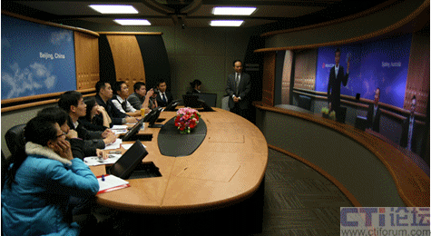 Australia”以外,畫面所呈現(xiàn)的場景與我們的會(huì)議室完全一樣。此時(shí),在座的體驗(yàn)者都露出驚訝的表情,并開始互致問好。讓我意外的是:當(dāng)人們開始自我介紹時(shí),大家的目光都齊刷刷的投向了發(fā)言者,而且就像坐在同一間會(huì)議室,根本不用刻意提高嗓門講話。