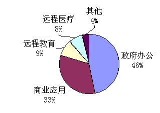 視頻會(huì)議系統(tǒng)在我國(guó)開(kāi)始發(fā)展的初期,政府部門及電信、金融、電力、鐵路等壟斷性行業(yè)的應(yīng)用占據(jù)了絕大部分的市場(chǎng)份額。近年來(lái)隨著電子政務(wù)工程的逐步推進(jìn),政府部門更加關(guān)注視頻會(huì)議系統(tǒng)建設(shè)。在經(jīng)濟(jì)發(fā)達(dá)地區(qū)(例如浙江、山東、廣東),視頻會(huì)議網(wǎng)已覆蓋到地市級(jí)城市,有的甚至覆蓋到縣一級(jí)。除各級(jí)政府之外,其它諸如檢察院、法院、公安和水利等職能部門也是視頻會(huì)議系統(tǒng)的重要用戶。賽迪網(wǎng)曾對(duì)視頻會(huì)議系統(tǒng)的應(yīng)用現(xiàn)狀做過(guò)調(diào)查,發(fā)現(xiàn)政府辦公占全部市場(chǎng)份額的46.6%,電信、金融、鐵路、電力等行業(yè)占據(jù)了33.2%的市場(chǎng)份額,而遠(yuǎn)程教育和遠(yuǎn)程醫(yī)療由于尚處于發(fā)展初期,所占份額分別是8.7%和7.9%。