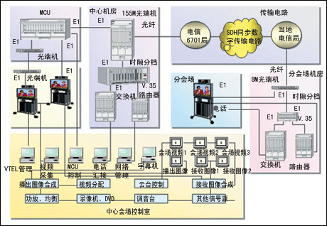 設(shè)備選用VTEL美國(guó)視訊公司銀河(Galaxy)755型視訊終端設(shè)備。該設(shè)備基于開(kāi)放式的PC界面,操作簡(jiǎn)單、升級(jí)容易,具有強(qiáng)大的多媒體和數(shù)據(jù)傳輸功能;具有先進(jìn)的網(wǎng)絡(luò)管理功能;可靈活與局域網(wǎng)或與Internet相連接;設(shè)有多種連接端口;智能化程度較高。多點(diǎn)會(huì)議服務(wù)器MCU設(shè)備具有較強(qiáng)網(wǎng)絡(luò)適應(yīng)能力,可連續(xù)開(kāi)機(jī)工作,運(yùn)行穩(wěn)定。北京法院電視會(huì)議系統(tǒng)由1臺(tái)24點(diǎn)MCU設(shè)備和24臺(tái)VTEL銀河755型電視會(huì)議終端設(shè)備組成。