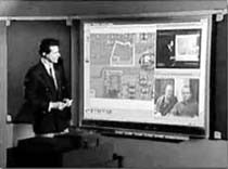 電子白板是經常用來輔助視頻會議數(shù)據(jù)應用的外設。簡單講,它是計算機的一個外圍設備或終端,它既可像傳統(tǒng)黑板一樣使用,又可作為投影儀的幕布,同時還是一個大型的電腦觸摸屏。電子白板與計算機串口相連,支持Netmeeting軟件,實現(xiàn)白板共享、異地實時互動。響應速度快,分辨率高。