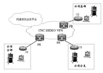 網(wǎng)通視訊業(yè)務(wù)作為應(yīng)用層的服務(wù),可以通過(guò)客戶的分支機(jī)構(gòu)之間由MPLS VPN組成的專網(wǎng)來(lái)承載視頻通信,或者通過(guò)接入網(wǎng)通的視頻VPN來(lái)使用視頻通信服務(wù)。