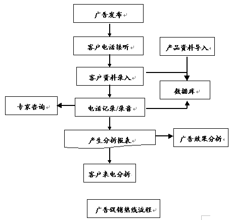 廣告熱線是在呼叫中心系統(tǒng)中設(shè)立專欄,為廣告中的產(chǎn)品或服務(wù)提供更詳細(xì)的資料。首先應(yīng)將需要在廣告中出現(xiàn)的詳細(xì)內(nèi)容或不適合在廣告中出現(xiàn)的內(nèi)容按照要求導(dǎo)入呼叫中心系統(tǒng),準(zhǔn)備就緒后,就在媒體或其他介質(zhì)上做廣告,其中廣告的內(nèi)容中含廣告熱線號碼。電話號碼建議采用800電話,以提高客戶撥打電話的積極性。呼叫中心會記錄打進的每一個電話,并且提供完成的系統(tǒng)報表。這樣可以彌補廣告中提供給消費者內(nèi)容不足的缺陷,另一方面可以根據(jù)電話量判斷廣告的效果。