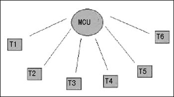 就H.323來講,企業(yè)存在ADSL、電信專線、衛(wèi)星網(wǎng)絡等多種選擇。H.323基于IP網(wǎng)絡,IP網(wǎng)絡雖然是總線型的網(wǎng)絡,但從H.323視頻會議系統(tǒng)組網(wǎng)來說,依舊同H.320視頻會議系統(tǒng)一樣,是星型網(wǎng)絡,如圖所示,所有的終端數(shù)據(jù)都匯集到MCU處。這樣對視頻會議系統(tǒng)組網(wǎng)就提出了要求,如果MCU以下共有6個終端,每個中端以B的帶寬開會,那么各個終端處的帶寬要求為B,MCU處的帶寬要求就為6B。