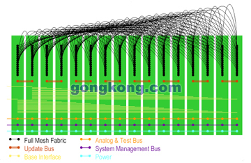 全網(wǎng)狀背板提供slot與slot之間最大限度的連接。所有的slot都是相同的連接方式,并且可以支持交換板卡(Switch boards)或者節(jié)點(diǎn)板卡(Node