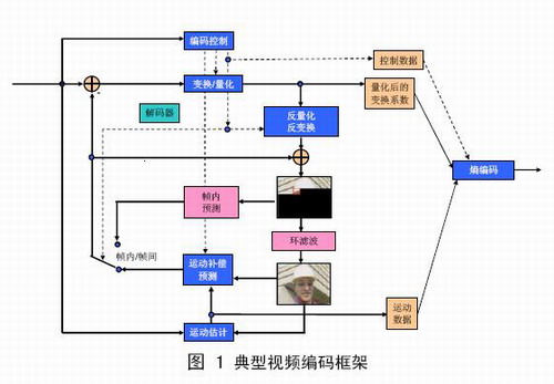 AVS視頻與MPEG標(biāo)準(zhǔn)都采用混合編碼框架(見圖1),包括變換、量化、熵編碼、幀內(nèi)預(yù)測、幀間預(yù)測、環(huán)路濾波等技術(shù)模塊,這是當(dāng)前主流的技術(shù)路線。AVS的主要?jiǎng)?chuàng)新在于提出了一批具體的優(yōu)化技術(shù),在較低的復(fù)雜度下實(shí)現(xiàn)了與國際標(biāo)準(zhǔn)相當(dāng)?shù)募夹g(shù)性能,但并未使用國際標(biāo)準(zhǔn)背后的大量復(fù)雜的專利。AVS-視頻當(dāng)中具有特征性的核心技術(shù)包括:8x8整數(shù)變換、量化、幀內(nèi)預(yù)測、1/4精度像素插值、特殊的幀間預(yù)測運(yùn)動(dòng)補(bǔ)償、二維熵編碼、去塊效應(yīng)環(huán)內(nèi)濾波等。