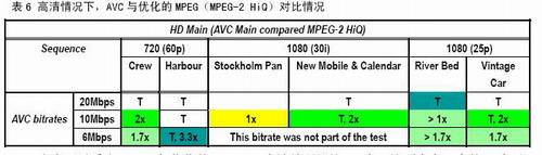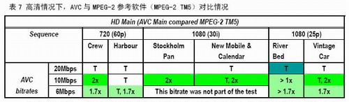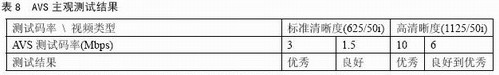 本次測試表明,AVS視頻碼率不到MPEG-2典型碼率二分之一(標(biāo)清)和三分之一(高清)的情況下,質(zhì)量損失很小,可以達(dá)到廣播要求。