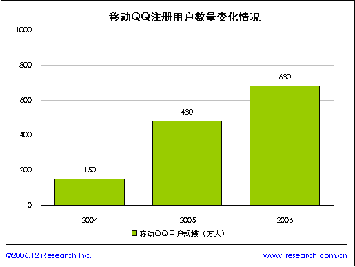近兩年移動(dòng)QQ的市場規(guī)模迅速擴(kuò)大,iResearch研究結(jié)果顯示2006年移動(dòng)QQ用戶規(guī)模達(dá)到680萬人,移動(dòng)QQ所帶來的現(xiàn)金收入成為騰訊上市公司最重要的收入之一。移動(dòng)IM與互聯(lián)網(wǎng)IM最大的不同在于產(chǎn)業(yè)鏈移動(dòng)運(yùn)營商的參與。艾瑞認(rèn)為互聯(lián)互通是移動(dòng)IM產(chǎn)業(yè)整合和發(fā)展必然趨勢(shì)。