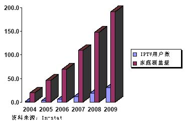 圖1世界范圍IPTV市場(chǎng)預(yù)測(cè)(單位:百萬)