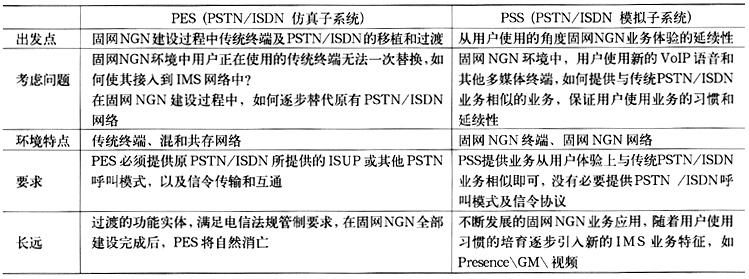 業(yè)務(wù)層的PSS和PES子系統(tǒng)針對(duì)不同的終端類型和業(yè)務(wù)需求而設(shè)計(jì)。使用PSS和PES主要目的是使寬窄帶域完全分離,即SIP用戶通過PSS子系統(tǒng)完成接入和業(yè)務(wù)提供,窄帶用戶通過PES子系統(tǒng)完成接入和業(yè)務(wù)提供。具體比較如表2所示。