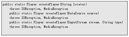 每個(gè)MMAPI程序都需要?jiǎng)?chuàng)建一個(gè)Player對(duì)象,前面我們已經(jīng)介紹過(guò),MMAPI使用Manager的CreatePlayer函數(shù)來(lái)創(chuàng)建Player對(duì)象,該函數(shù)有三個(gè)版本,其格式如下: