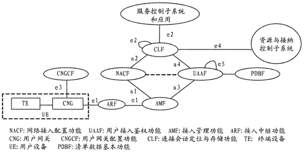AMF負(fù)責(zé)翻譯UE的接入請(qǐng)求,將UE的IP地址分配請(qǐng)求以及網(wǎng)絡(luò)配置參數(shù)請(qǐng)求轉(zhuǎn)發(fā)至NACF,將用戶(hù)鑒權(quán)請(qǐng)求轉(zhuǎn)發(fā)給用戶(hù)接入鑒權(quán)功能(UAAF),反向則將來(lái)自NACF或UAAF的響應(yīng)轉(zhuǎn)發(fā)給UE。