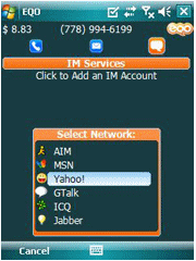 軟件的使用與Talkonaut大同小異,不過EQO更美觀,而且支持QQ和CMWAP。在開始聊天的時候EQO會發(fā)出一條包含其網(wǎng)址的說明消息,有廣告之嫌。由于其主業(yè)是國際電話,所以注冊時網(wǎng)站預(yù)贈你¥15元的話費試用長話功能。
