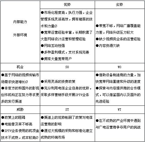 表2:電信運營商的SWOT分析