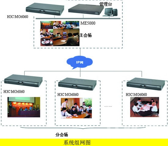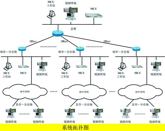 在視頻會議中,要考慮到,當集團召開全體會議時,可以通過MCU級聯(lián)的方式,方便地與總部實現(xiàn)交互式會議。同時,應(yīng)與VoIP語音、前方工作隊監(jiān)控系統(tǒng)融合在一起,達到整體協(xié)調(diào)高效的工作。