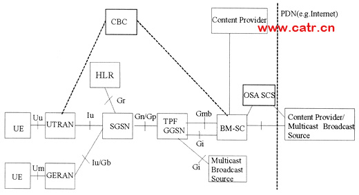 隨著移動用戶高速寬帶數據業(yè)務的應用,當大量用戶同時接收同樣的高速數據時,由于待發(fā)送內容是每個用戶都需要接收的數據,如果信源與每個接收用戶建立鏈路,每條鏈路上又都重復發(fā)送相同數據,這樣會造成資源使用的重復和浪費。因此,需要一種支持移動的廣播多播技術可以有效利用信源和無線網絡空口資源,以減少網絡中傳送的數據量,克服網絡擁塞。3GPP