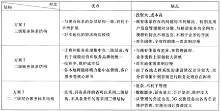 3G計(jì)費(fèi)賬務(wù)體系結(jié)構(gòu)主要分為三級(jí)賬務(wù)體系結(jié)構(gòu)、二級(jí)賬務(wù)體系結(jié)構(gòu)和二、三級(jí)混合賬務(wù)體系結(jié)構(gòu)等幾種方式。各種賬務(wù)體系結(jié)構(gòu)對(duì)比見表1。