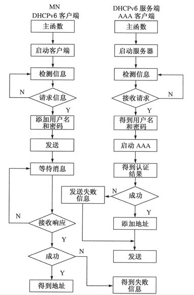 當(dāng)DHCPv6服務(wù)器調(diào)用子進(jìn)程執(zhí)行AAA客戶端程序后,AAA客戶端將把從MN傳過來的密碼和用戶名添加到認(rèn)證請求選項中,向AAAL進(jìn)行認(rèn)證。AAAL將收到的消息轉(zhuǎn)發(fā)給AAAH服務(wù)器,AAAH收到認(rèn)證請求后進(jìn)行認(rèn)證。如用戶名和密碼正確,則返回Accecpt響應(yīng)消息,標(biāo)志認(rèn)證成功;如用戶名或者密碼錯誤,則返回Reject響應(yīng)消息,標(biāo)志認(rèn)證失敗。AAAL收到認(rèn)證回復(fù)消息后記錄認(rèn)證信息,下次認(rèn)證時只需詢問AAAL,減少認(rèn)證步驟。