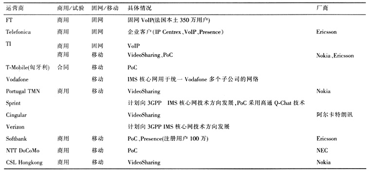 業(yè)務方面,隨著各主流運營商的積極引入和探索,各種不同的業(yè)務組合頻頻試水移動和固網(wǎng)市場,獲得廣泛關注,其中以PoC、移動視頻共享、即時通信以及固網(wǎng)VoIP等最為引人注目。作為較早面市的移動IMS服務之一,PoC、移動視頻共享已經(jīng)商用,其他如Presence、固網(wǎng)VoIP等業(yè)務也取得了很好的發(fā)展。