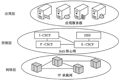 隨著通信技術(shù)不斷發(fā)展,通信網(wǎng)絡(luò)寬帶化成為一個(gè)明顯的發(fā)展趨勢(shì)。為了適應(yīng)這個(gè)發(fā)展趨勢(shì),向用戶提供更加豐富的移動(dòng)業(yè)務(wù)。3G移動(dòng)通信標(biāo)準(zhǔn)組織(3GPP)在R5版本中提出了IP多媒體子系統(tǒng)(IMS)的技術(shù)架構(gòu)[1],其核心思想是在3G網(wǎng)絡(luò)中引入支持IP多媒體業(yè)務(wù)的子系統(tǒng)。IMS的技術(shù)特點(diǎn)在協(xié)議層面上來(lái)說(shuō)。就是控制和應(yīng)用分離,如圖1所示。控制層采用會(huì)話初始化協(xié)議(SIP),應(yīng)用層支持各類IP以上的應(yīng)用層協(xié)議,如RTP、FTP、SMTP等。在網(wǎng)絡(luò)層面上來(lái)說(shuō),IMS采用承載網(wǎng)和控制網(wǎng)分離的原則。由于上述技術(shù)特點(diǎn),在IMS網(wǎng)絡(luò)上推出多媒體業(yè)務(wù)比3G