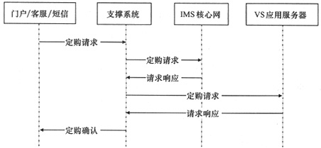 IMS網(wǎng)絡(luò)用戶為了能使用VS業(yè)務(wù),首先必須進(jìn)行VS業(yè)務(wù)的定購(gòu),業(yè)務(wù)定購(gòu)流程如圖3所示,具體步驟如下。
