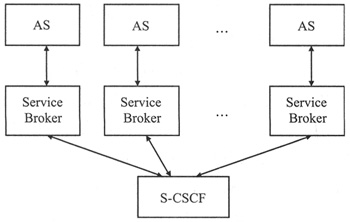 分布式控制方式為每一個(gè)AS都配置一個(gè)ServiceBroker,S-CSCF把每個(gè)ServiceBroker都視作AS,通過ISC接口與其交互。S-CSCF將請求觸發(fā)給ServiceBroker,AS執(zhí)行完后,Service