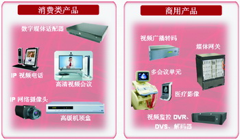 轉碼芯片的差異化關鍵是可支持多樣化的編碼格式,尤其是向便攜式產(chǎn)品的延伸。加拿大威視(ViXS)系統(tǒng)公司開發(fā)的轉碼芯片XCode3290就具有稱做“鏡像轉碼”的功能,可以將HDTV的視頻內(nèi)容同時轉換成2種不同編碼格式。例如,將MPEG-2的HDTV視頻轉碼成H.264的同時,還能將分辨率縮小為320X240像素的QVGA,方便在iPod等便攜產(chǎn)品上播放。