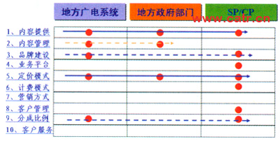 在這種模式下,固網(wǎng)公司主要與政府部門和SP/CP進(jìn)行合作。相應(yīng)的推廣方式是以農(nóng)村信息化和黨員遠(yuǎn)程教育為切入點(diǎn),主要內(nèi)容為農(nóng)業(yè)科技信息、黨政信息、文化資訊。同時(shí)以SP/CP為主,提供VOD內(nèi)容,以提高用戶對(duì)IPTV接受程度,擴(kuò)大用戶規(guī)模。這種模式下,廣電經(jīng)營數(shù)字電視,固網(wǎng)經(jīng)營寬帶增值服務(wù),兩者合作程度小,主要是實(shí)現(xiàn)終端(電視)的公用。內(nèi)容供應(yīng)者擁有最大主動(dòng),固網(wǎng)主要提供通道。固網(wǎng)公司的最大收獲是將寬帶由電腦(臥室)拓展至電視(客廳)。