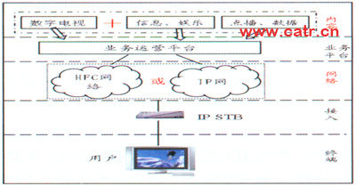 這種模式的合作點(diǎn)主要在接入層面,以提供雙模機(jī)頂盒為主要方法。固網(wǎng)公司和廣電發(fā)揮各自資源優(yōu)勢(shì)進(jìn)行合作。廣電節(jié)目傳送由廣電負(fù)責(zé),同網(wǎng)提供寬帶增值服務(wù),兩者分業(yè)經(jīng)營,地位平等。