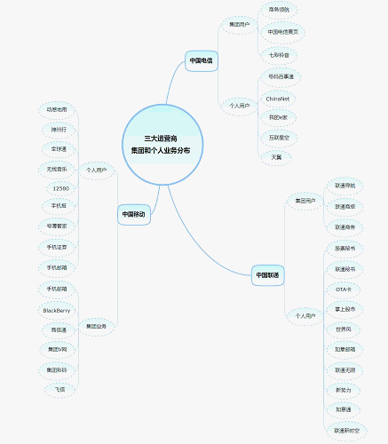 從三大運營商集團和個人業(yè)務(wù)分布可看出:針對行業(yè)和品牌所提供的服務(wù)方面存在巨大的可挖掘市場。