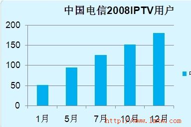 從08年初的51萬用戶到年末的180萬,中國電信IPTV即使面臨政策的限制,仍獲得了極大的發(fā)展。IPTV作為中國電信的戰(zhàn)略新興業(yè)務,作為中國電信切入視頻服務領(lǐng)域、帶動寬帶業(yè)務持續(xù)發(fā)展的重要種子業(yè)務,其價值正被日益認可。