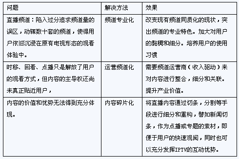 IPTV發(fā)展中,傳統(tǒng)視頻業(yè)務既是切入點,同時也是業(yè)務收入的重要來源。但目前視頻業(yè)務的價值還未得到充分體現(xiàn);有詢(yōu)勢還未得到充分挖掘。