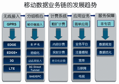 圖1 移動(dòng)數(shù)據(jù)業(yè)務(wù)鏈的發(fā)展趨勢(shì)