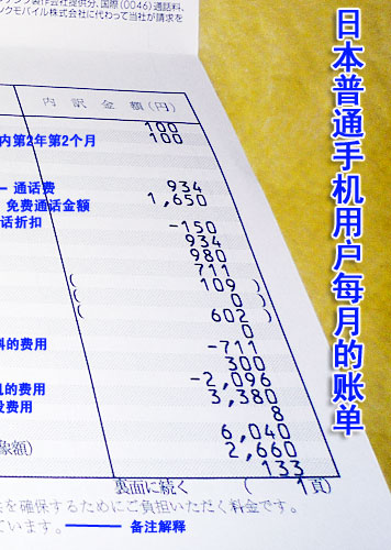 到底在購買各種套餐之后,用戶每個月使用多少錢呢?下面是一份普通的日本手機用戶每個月收到的賬單,通過這份賬單我們清晰看出3G資費的構成。在這里,我們清晰看到?jīng)]有漫游費,如果沒有折扣,該用戶至少需要付近3萬日元的費用,實際上,最后用戶需要繳納的費用是6064日元,其中還包含了購買新款手機3380日元的費用,實際上產(chǎn)生的話費是2660日元。